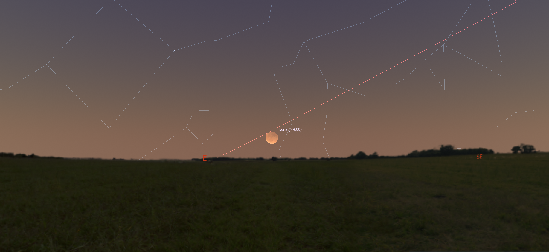 Además de estar atentos al orto lunar necesitaremos un horizonte este lo más despejado de obstáculos y nubes posible. En los eclipses de Luna esta nunca desaparece del todo. El brillo se va reduciendo sectorialmente a la vez que adquiere la característica tonalidad rojo-ladrillo tan bonita, debido al filtrado de la luz solar a través de la atmosfera terrestre, que favorece la luz cálida sobre la fría (las longitudes de onda larga se dispersan mucho menos que las cortas). Esta reducción de brillo unido a la baja altura que reduce aún más la luz de los astros cerca del horizonte hará «misión imposible» captar la Luna en su fase de totalidad antes de que empiece a ser iluminada de nuevo. Unos prismáticos pueden ayudar mucho en su búsqueda barriendo el horizonte a partir de la hora de su salida.